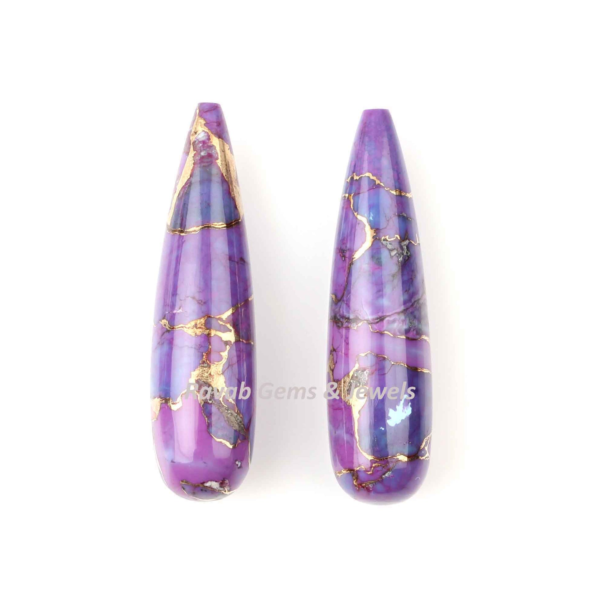 Purple Copper Turquoise 9x30mm Drop Smooth Gemstone, Calibrated Teardrops For Jewelry Earring Making- 2 Pcs Set Wholesale Lot Available