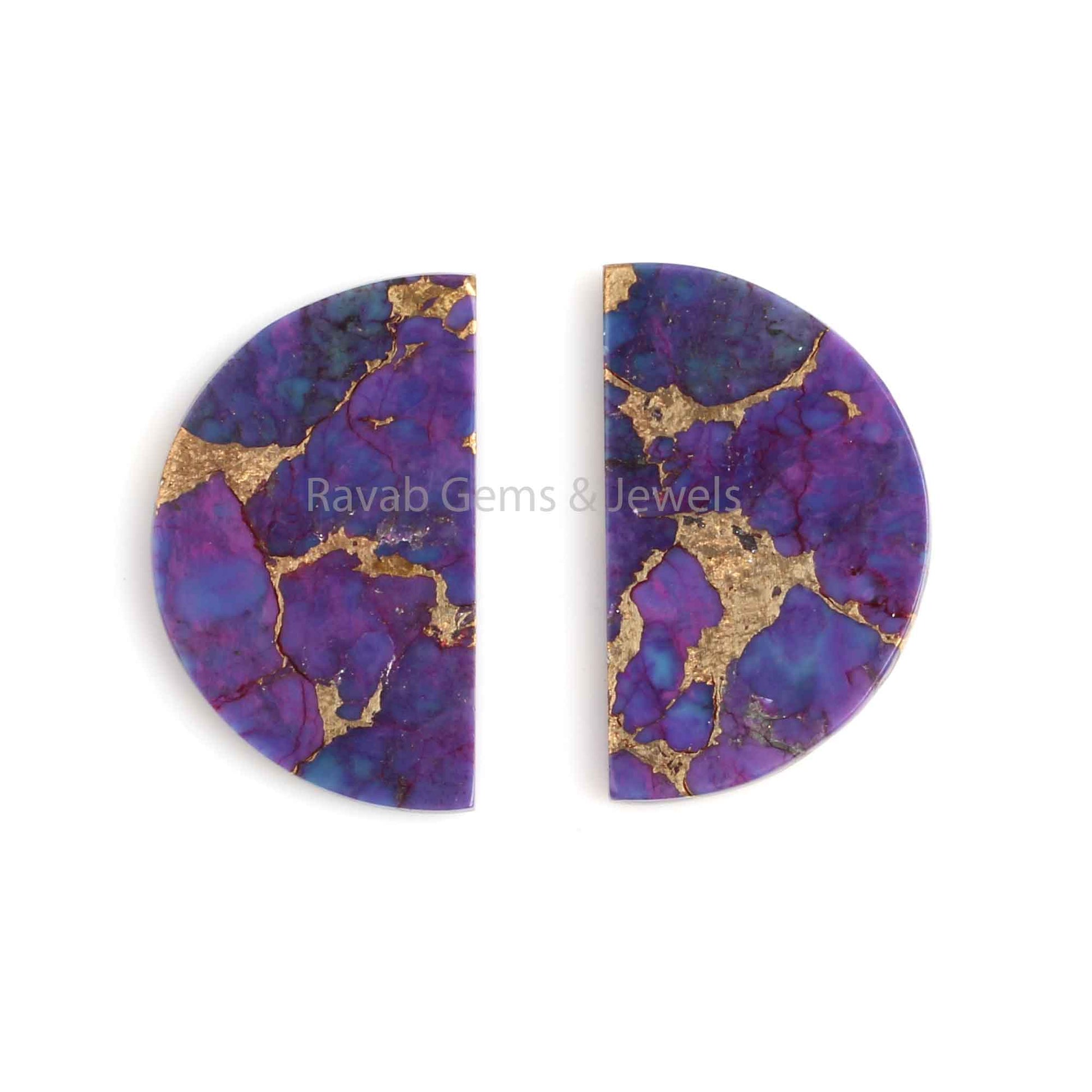 Purple Copper Turquoise 'D' Half Moon Shape Flat Gemstone For Jewelry, Loose Beads Calibrated Stone For Matching Earring Making Stones 2 Pcs