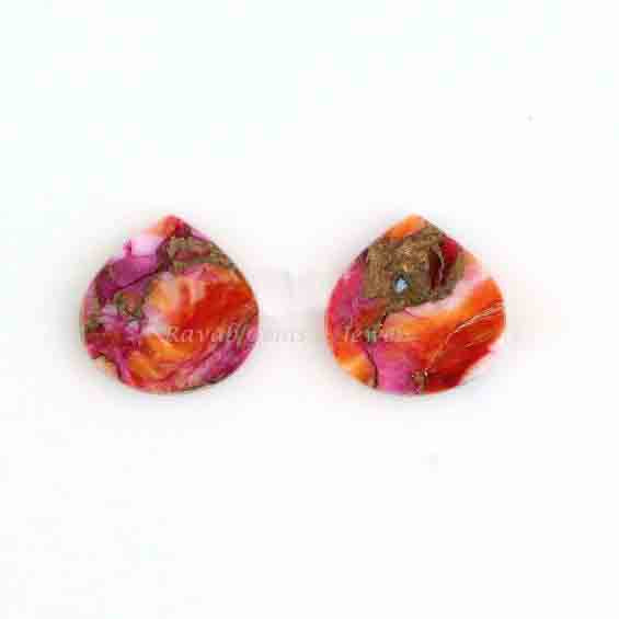 Purple Orange Oyster Dahlia Copper Turquoise Gemstone, 12mm Heart Shape Flat Calibrated Stones, Beads Stones For Jewelry Making - 2 Pcs Set