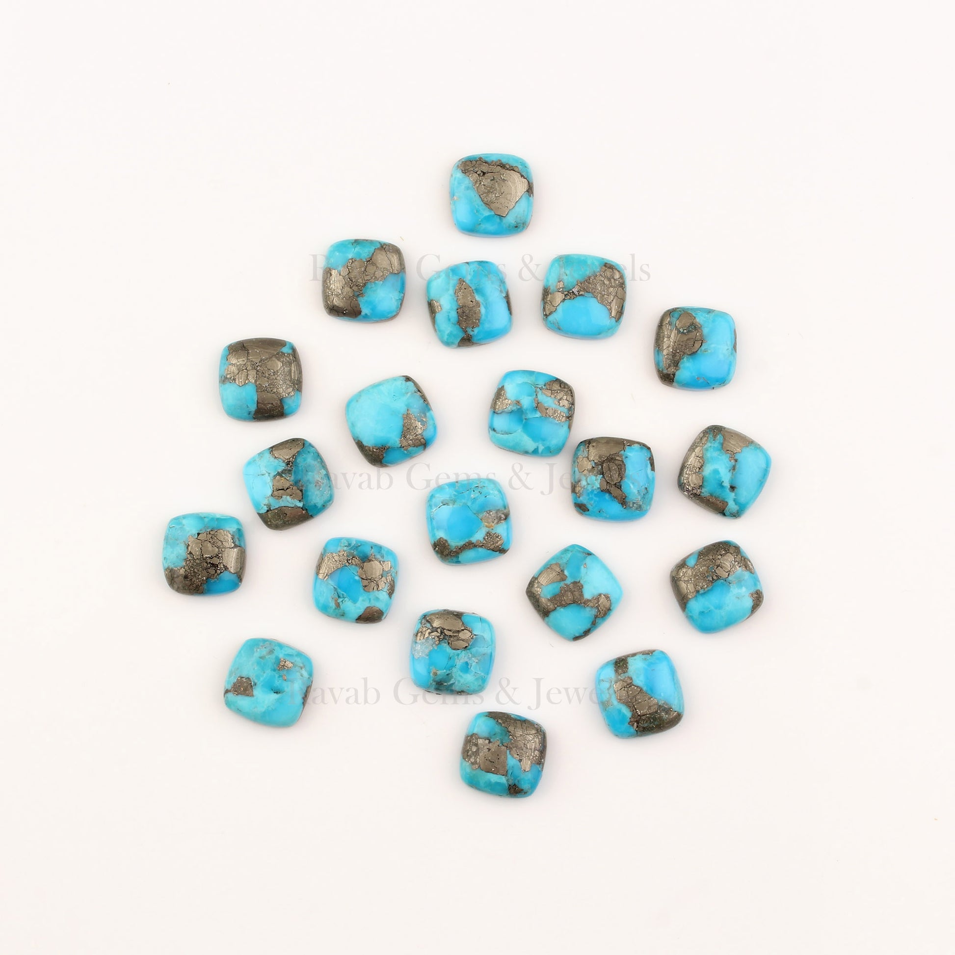 Pyrite Turquoise Cushion Shape Smooth Calibrated Cabochons Gemstone | Loose Beads Stone For Matching Jewelry Making 5 Pcs Set