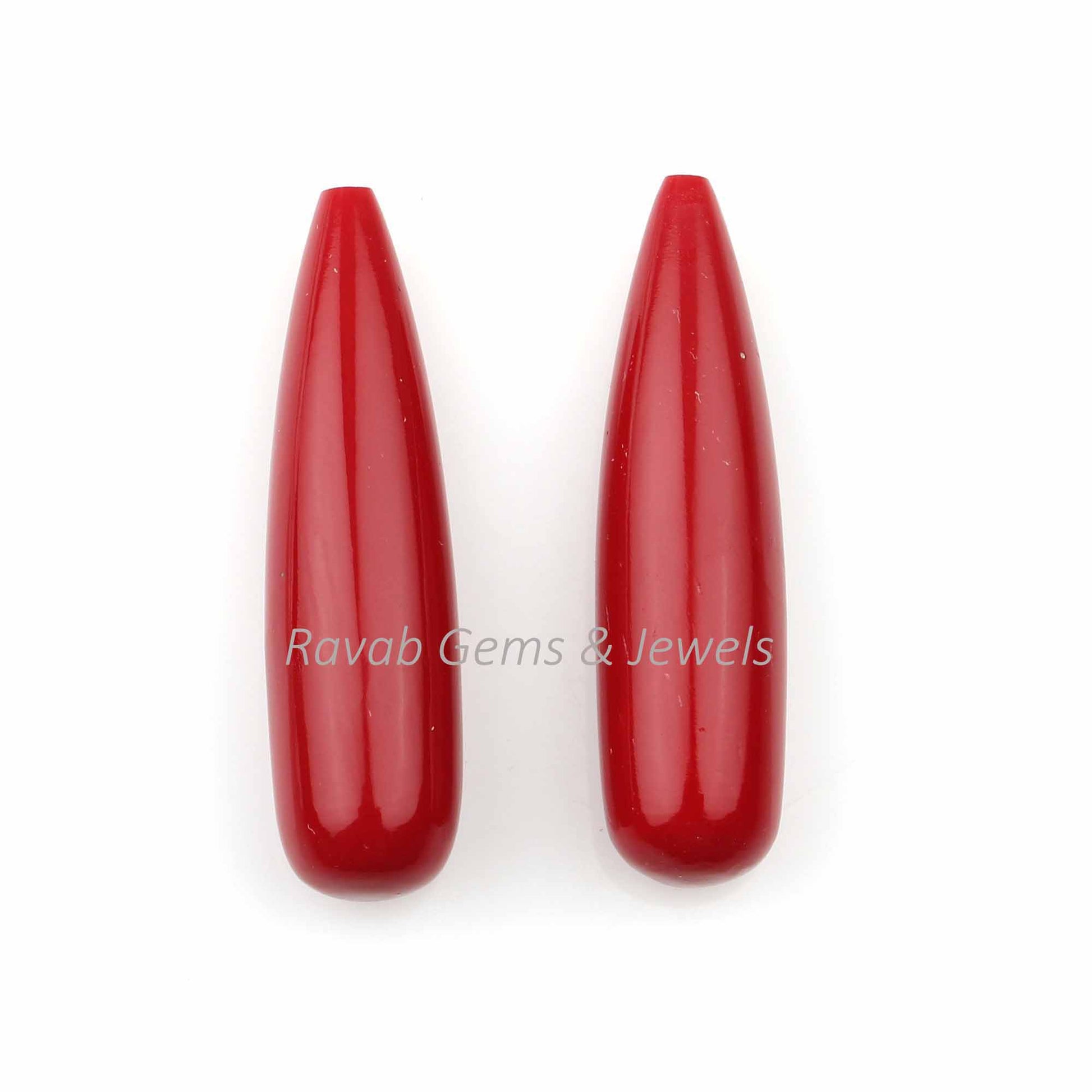 Red Coral Long Drop Smooth Gemstone , Teardrop Calibrated Stones, Jewelry Earring Making Pair Gemstones 9x30mm - Long Pair Stone - 2 Pieces