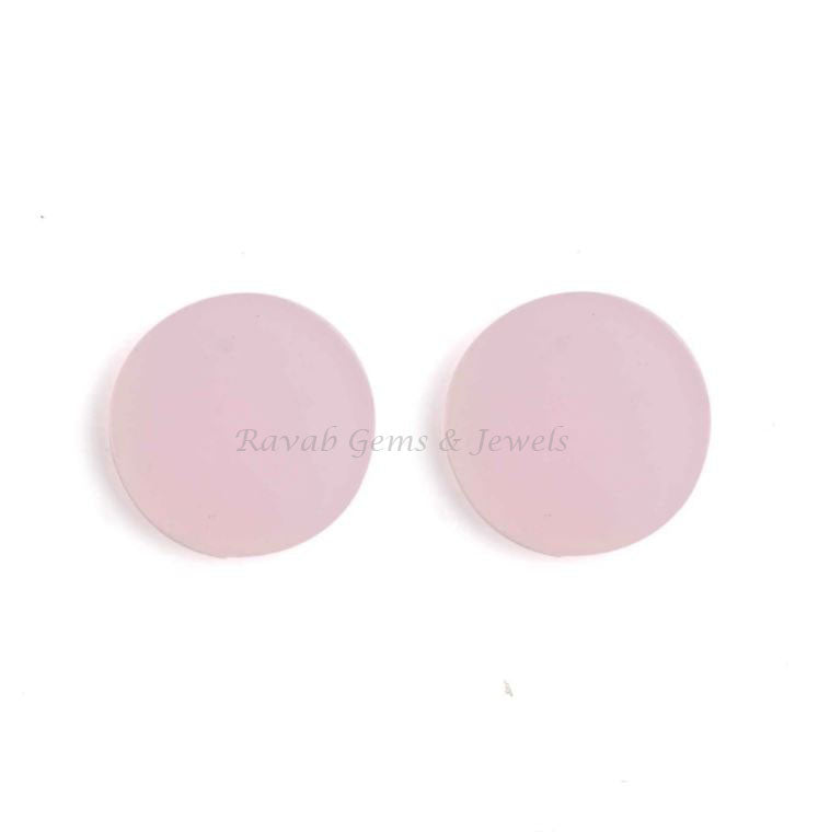 Rose Quartz Round Coin Shape Flat Gemstone for Jewelry Earring Making, Loose Beads Calibrated Stone For Lovely Gifted 2 Pcs Set 12mm