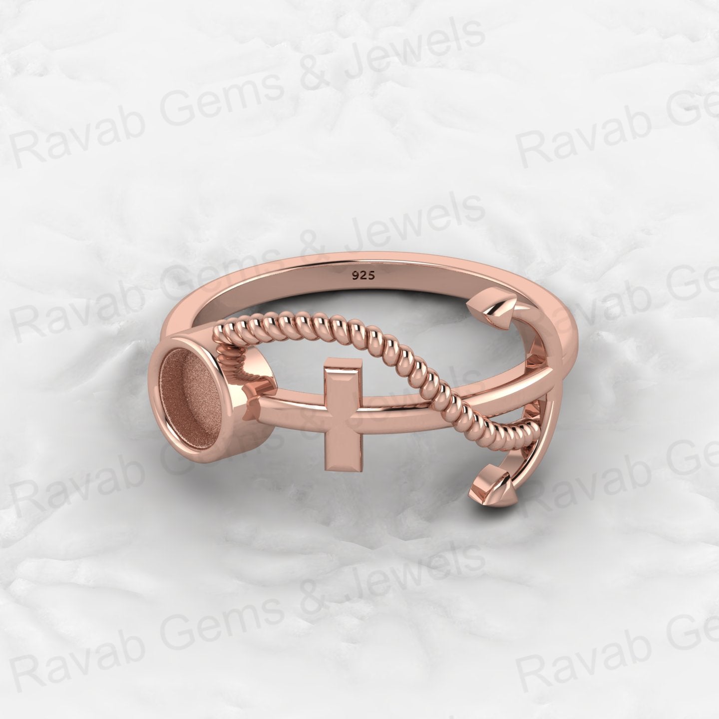 Solid 925 Sterling Silver 6mm Boat Anchor Semi Mount Ring Blank Setting Wedding Band Ashes Resin Jewelry Findings Components