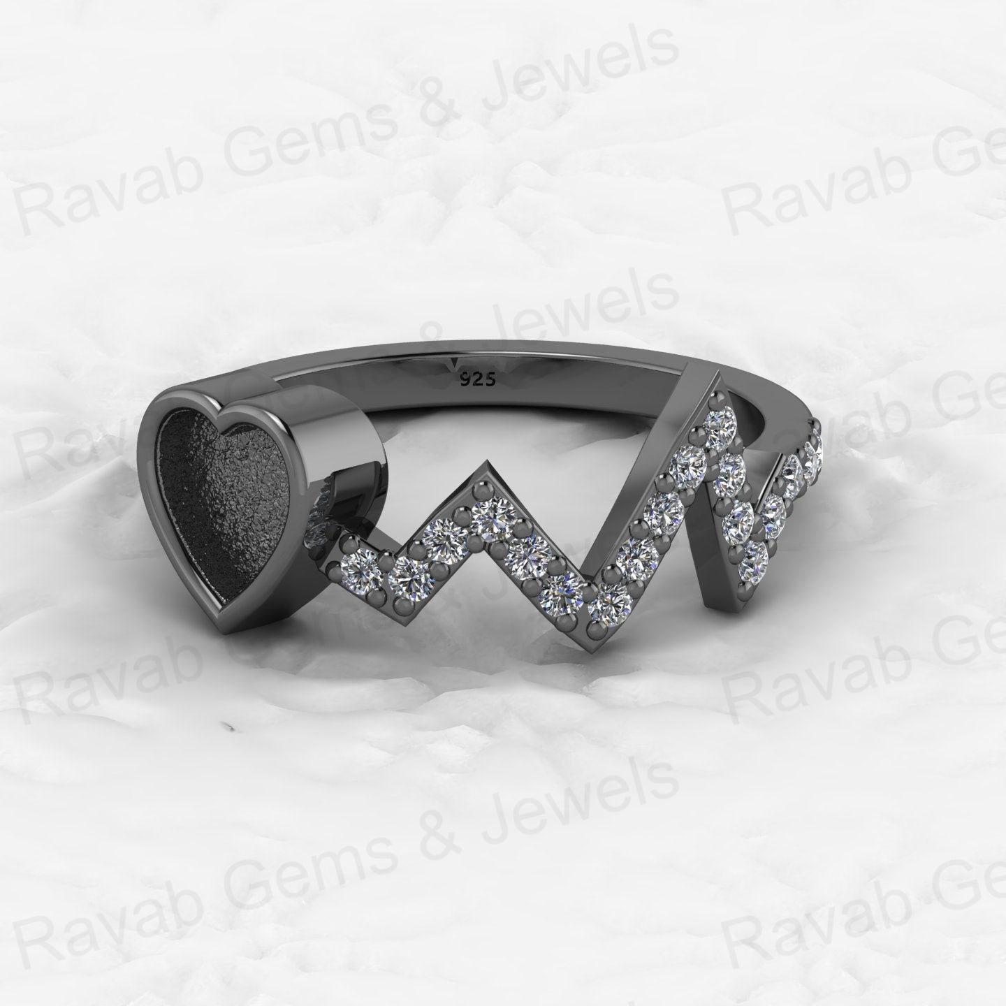 Solid 925 Sterling Silver Semi Mount Ring Initials Heart Blank Setting with Resin Ashes Breastmilk Jewelry-Genuine Product