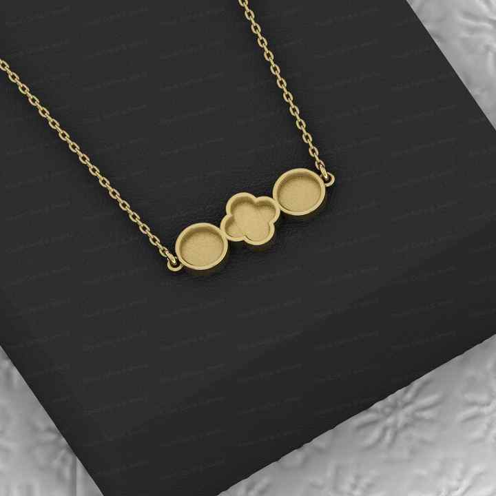 Solid 925 Silver 10mm Clover & Round Bezel Pendant Semi Mount Charm Setting for Resin Ashes Stone Jewelry Findings Components