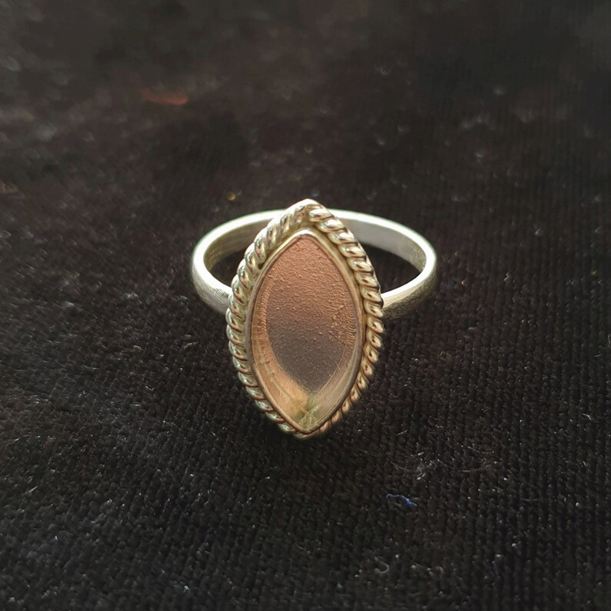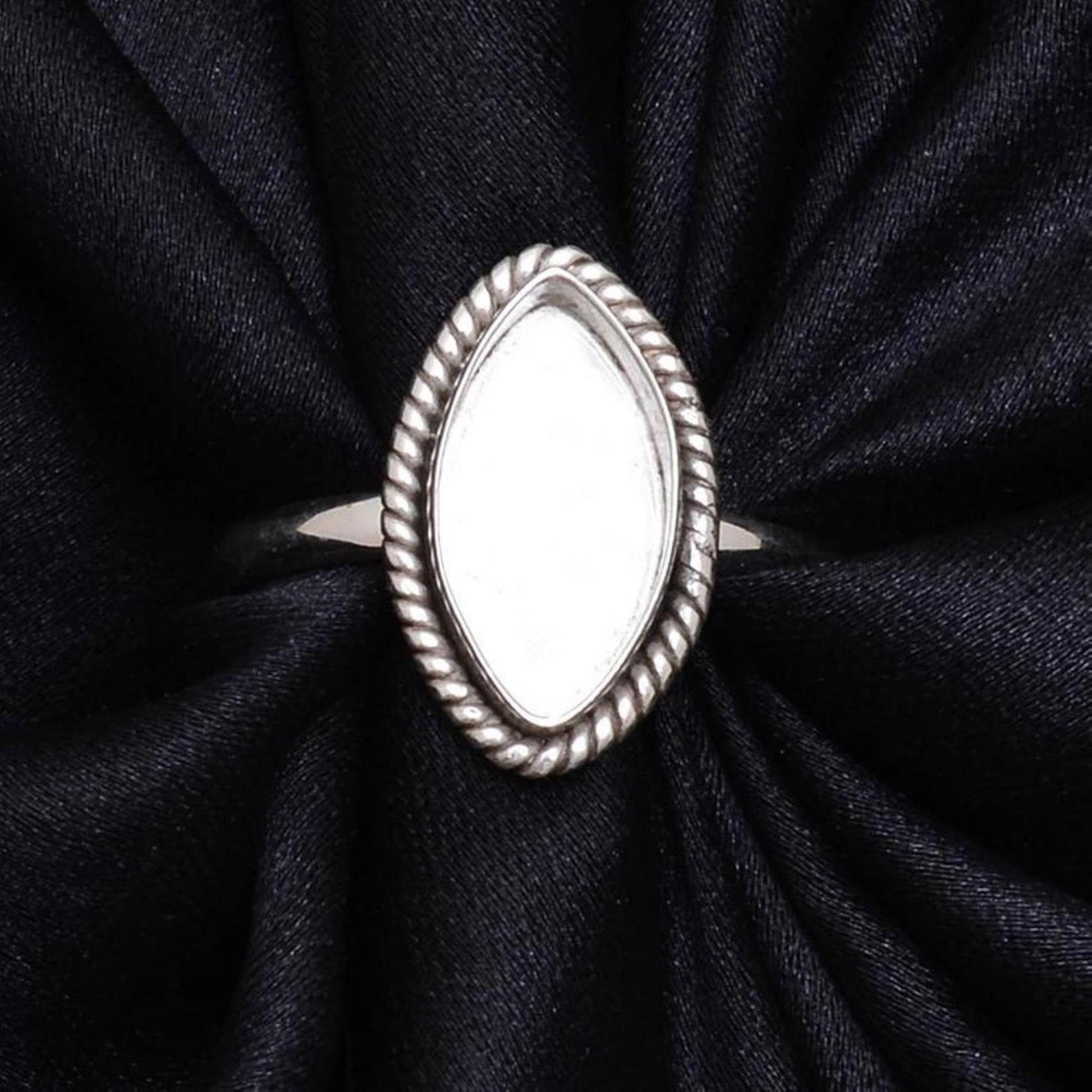 Solid 925 Sterling Silver Marquise Blank Component Bezel Cup Setting Semi-Mount Blank Setting Simple Band Fine Ring For Women