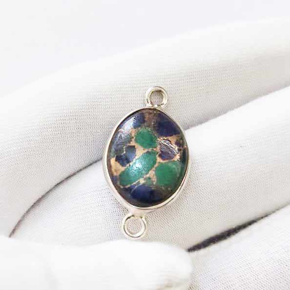 Green Copper Turquoise 12x16mm Oval Bezel Setting Solid 925 Sterling Silver Charm Connector Making For Necklace Fine Jewelry