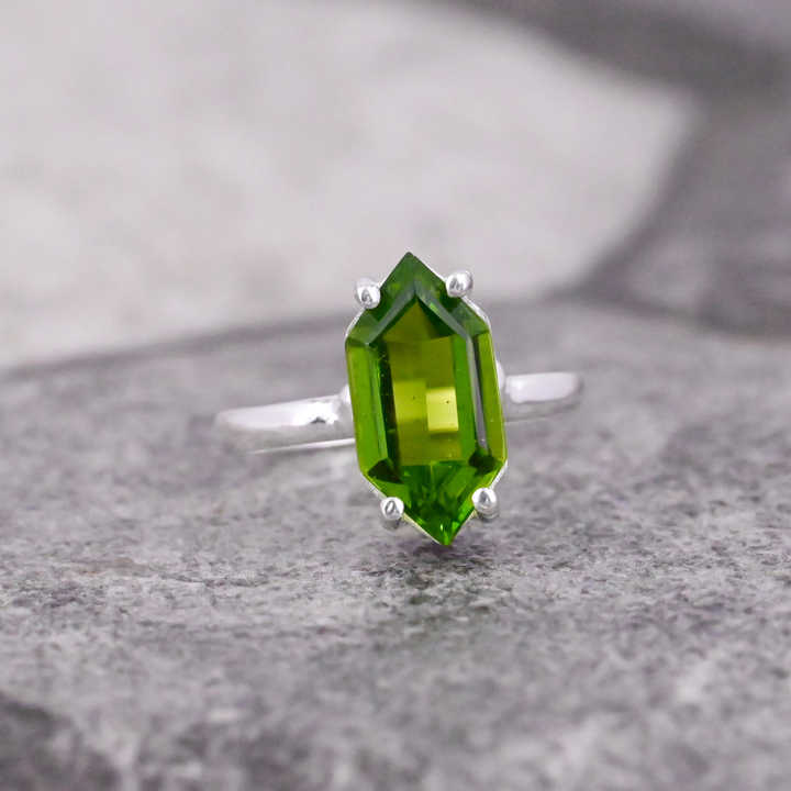 Superb Quality Solid 925 Sterling Silver Green Peridot Hydro Hexagon Shape 12x16mm Prong Setting Ring For Women Fine Jewelry