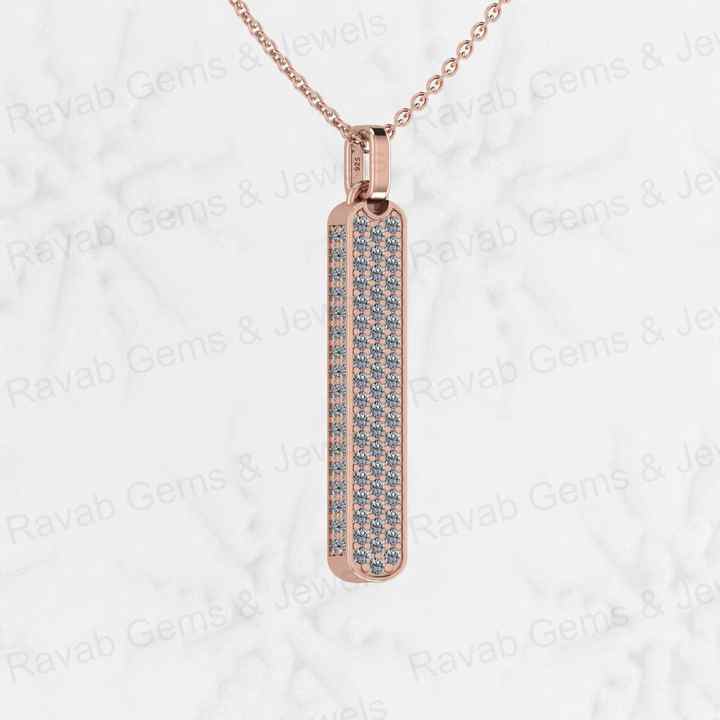 New Arrival Solid 925 Sterling Silver Vertical Bar Micro Pave Diamond CZ Prong Setting Pendant for Men's Fine Classic Necklaces