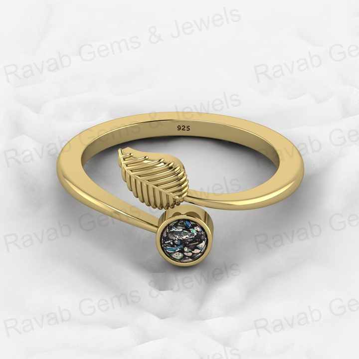 Best Selling Solid 925 Sterling Silver Black Ethiopian Opal Bezel Leaf Designer Adjustable Ring For Women Birthstone Jewelry