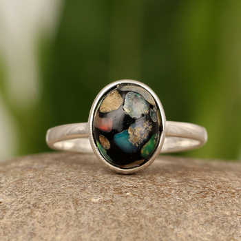 Top Selling Black Opal Copper Genuine 925 Sterling Silver Women Handmade 10x14mm Oval Shape Dainty Bezel Setting Ring for Women