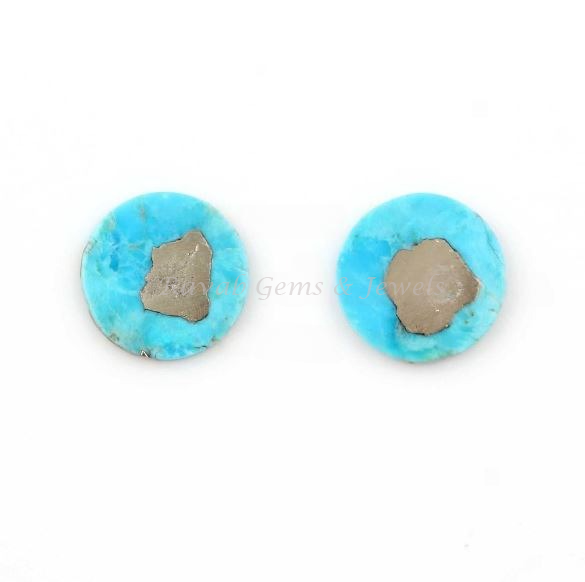 Turquoise Pyrite Round Coin Shape Gemstone, Calibrated Stones, Quality Stone For Jewelry Earring Making 12mm 2 Pcs Set All Size Available