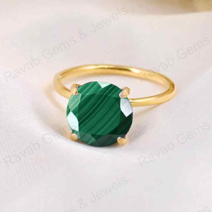Best Selling 10mm Natural Malachite Gemstone Round Faceted Cut Genuine 925 Silver Gold Vermeil Eternity Women Ring Fine Jewelry