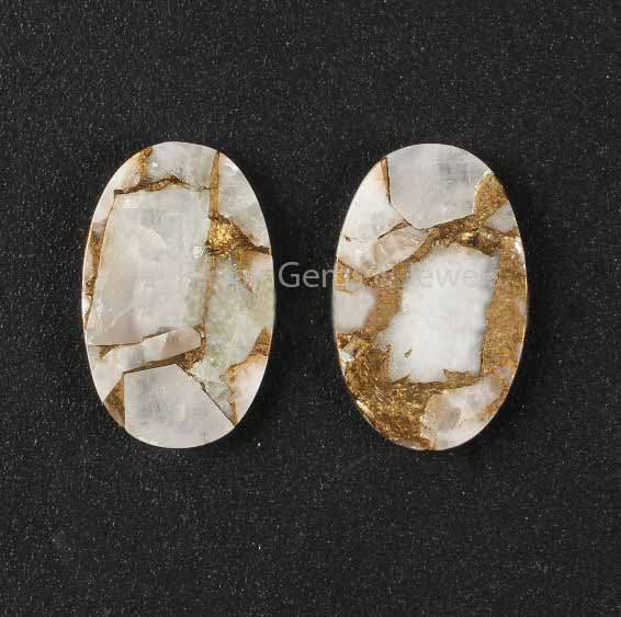 White Calcite Copper Oval Shape 12x19mm Both Side Flat Gemstone, Calibrated Stone For Jewelry Earring Making, Lovely Pair Stones 2 Pcs Set